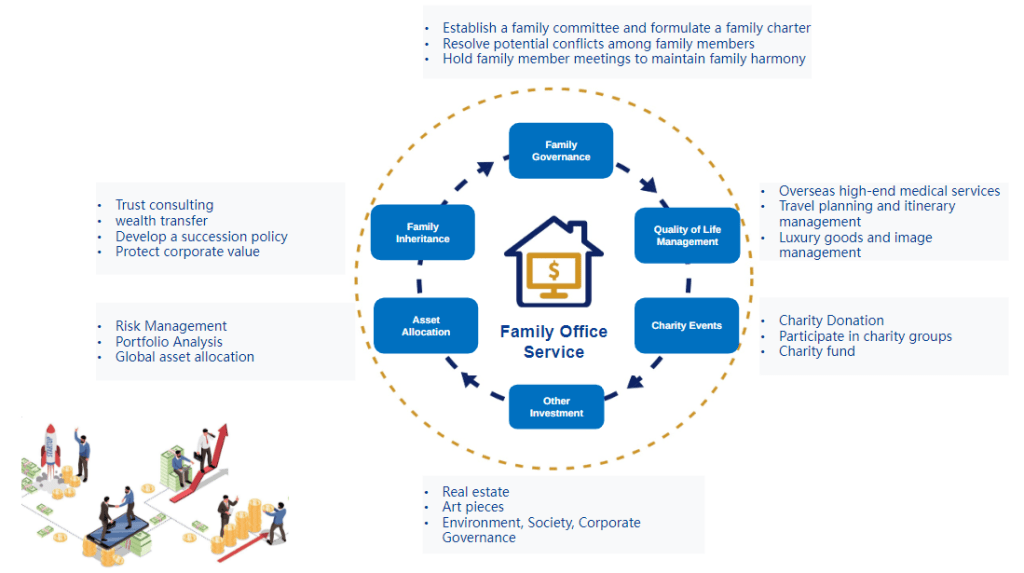 Through family office services, high-net-worth families can obtain professional wealth management support, ensuring the security and continuous growth of their wealth while reducing tax burdens, optimizing investment portfolios, and facilitating effective wealth transfer.